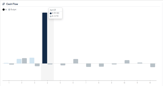 Visualisiere die Entwicklung deiner Liquidität mithilfe des Dashboards. Dort kannst du deinen Cash Flow und liquiden Mittel im Blick behalten.